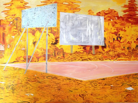 Riflettendo su i concetti di ambiente ed ecosistema, ricostruisco dalla memoria e attraverso la composizione pittorica immagini che indagano I confini fra artificio e natura. Ricerco situazioni formali ambigue e spesso contradittorie, invitando lo spettatore a riflettere sul proprio rapporto con I soggetti iconografici raffigurati, provenienti dai margini dell’esperienza contemporanea degli spazi aperti, dei parchi, dei giardini, e del tessuto urbano.