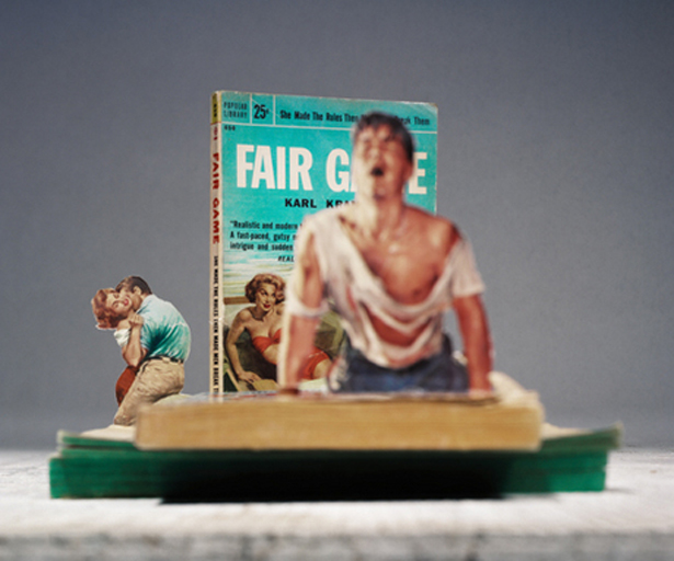 Nelle sue fotografie, Thomas Allen ricrea le stesse suggestioni vissute da bambino attraverso i libri pop-up e i View-Master: ritagli di copertine di vecchi romanzi pulp sono liberati dalle loro dimensioni bidimensionali e resi vivi mediante un sapiente uso della messa a fuoco, della luce e della prospettiva. Ogni volume, come il personaggio di un dramma, interagisce con l’altro nella rappresentazione di storie d’amore e desiderio.