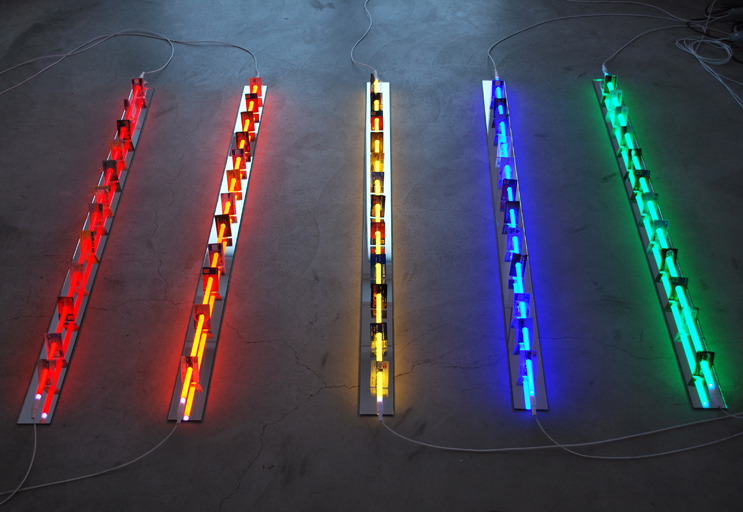 Da sempre intrappolato nel “sogno americano”, Jay Batlle riflette nei suoi lavori il proprio vissuto di studente, debitore: entrato al college grazie a un “prestito d’onore” che non ha mai potuto ripagare, Jay ha dichiarato fallimento a 24 anni e ha dovuto arrangiarsi lavorando ai margini del sistema. In questa nuova serie di lavori presenta opere il cui soggetto sono i simboli stessi della decadenza americana e della sua personale bancarotta: le sue carte di credito, inchiodate al muro a formare il classico graffito dei carcerati o forate e attraversate da un neon simbolo delle sempre più pericolose linee di credito concesse ai possessori.