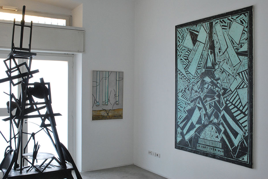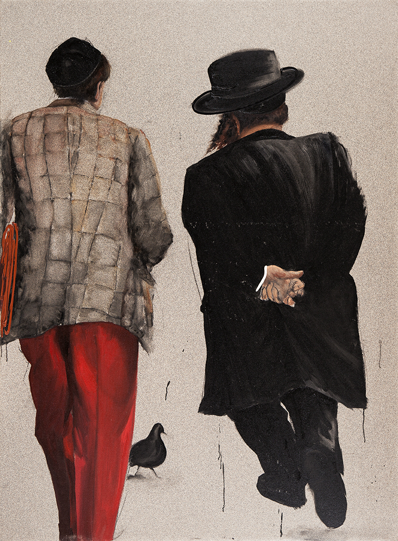 Alcune sculture di grandi dimensioni, quali Scultura un corno ed Eiffel, completano la mostra alla Galleria Giuseppe Pero che si chiude idealmente con Autoritratto a Williamsburg dove un Mondino dai pantaloni rossi si allontana, mostrandoci le spalle, con un rabbino.