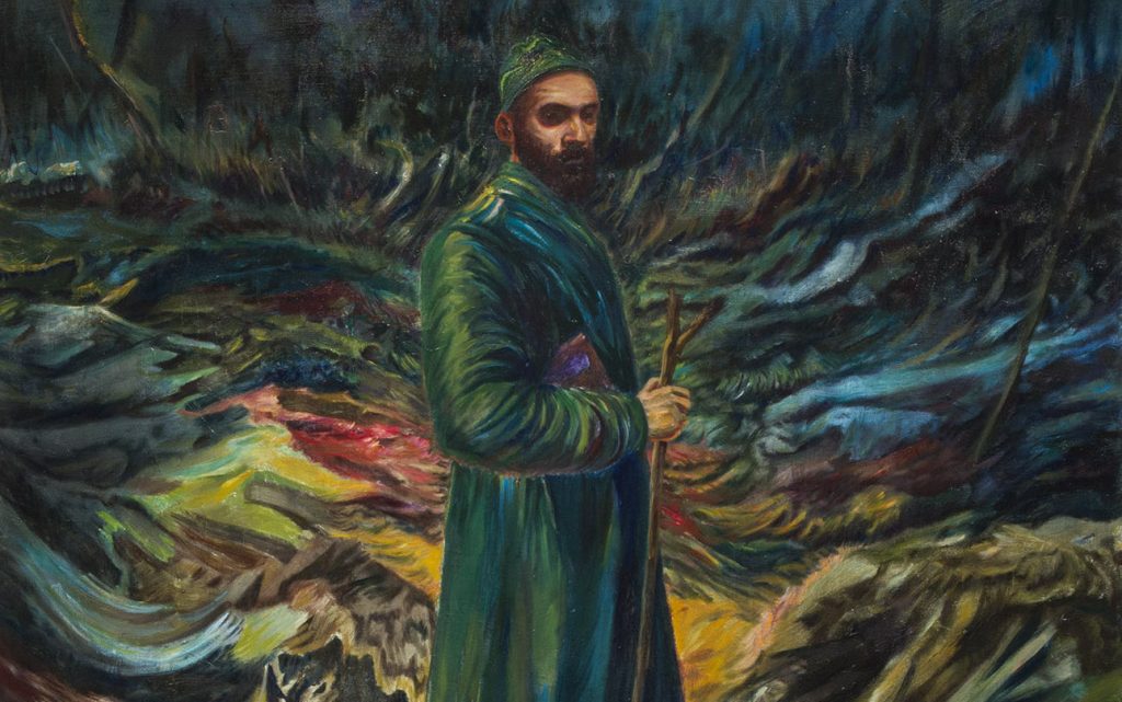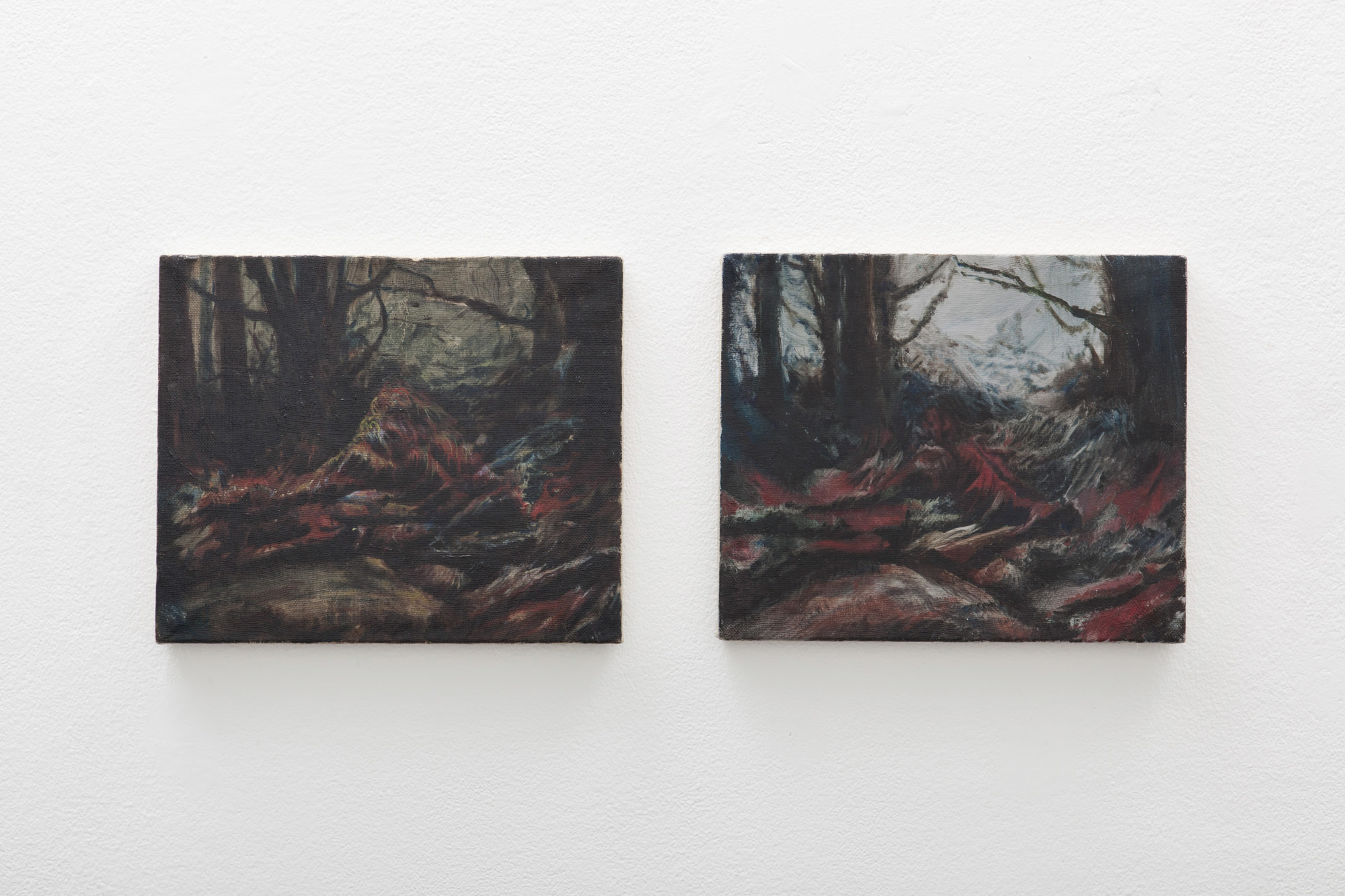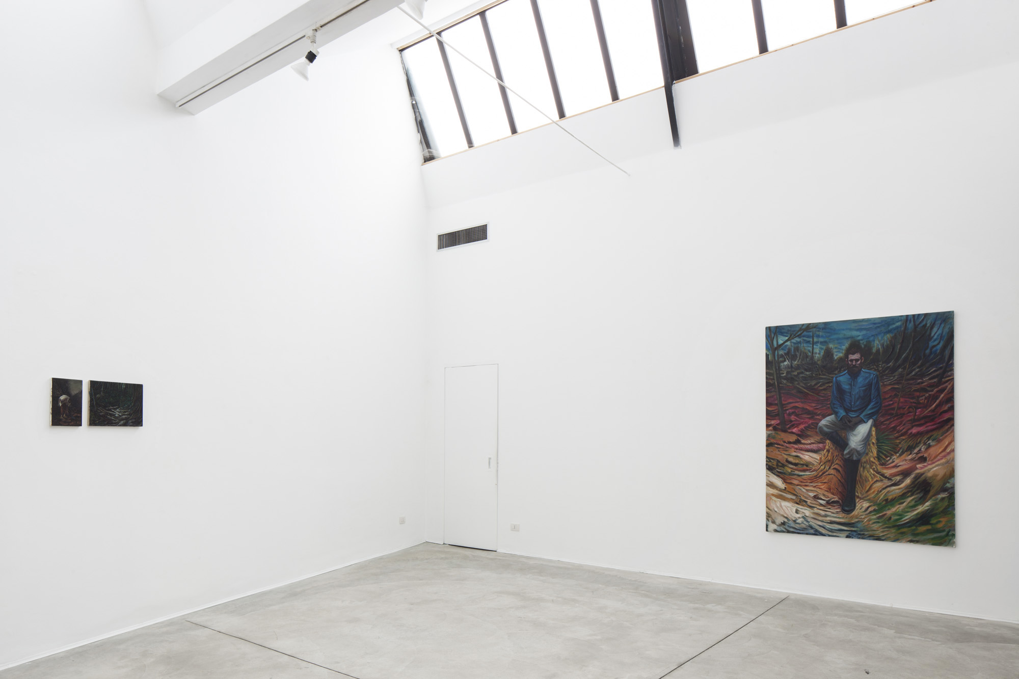 Tele di piccole e grandi dimensioni seguono un percorso unitario nel proporre la personale visione di una narrazione per immagini. Ogni singolo quadro può essere osservato nel duplice aspetto di opera finita e parte di un processo condiviso. Il colore, sempre deciso e violento, si ritaglia un’identità astratta anche in un contesto dichiaratamente figurativo. Quella di De Angelis è una pittura molto legata alla ricerca artistica dell’Est e Nord Europa, per il ruolo centrale che il colore, inteso anche come materia, mantiene nella composizione. La pittura in questi paesi ha conservato una forte caratterizzazione figurativa, anche in un contesto storico di enormi cambiamenti e di attenzione, da parte degli artisti, verso poetiche astratte. La figura ha finito per divenire uno degli elementi dello spazio dipinto. E’, insieme al colore, uno dei componenti della narrazione. De Angelis inserisce la sua poetica in questa linea di ricerca, dove la figura umana e il paesaggio rappresentato hanno lo stesso peso del colore, del suo spessore materico. I suoi dipinti non sollecitano quesiti su astrattismo o figurazione, tendono piuttosto a suggerire degli stati d’animo. Ogni quadro è concepito come un viaggio, un’esperienza emotiva, dove la Natura, rimarcando la sua supremazia, sovrasta e disorienta lo spettatore.